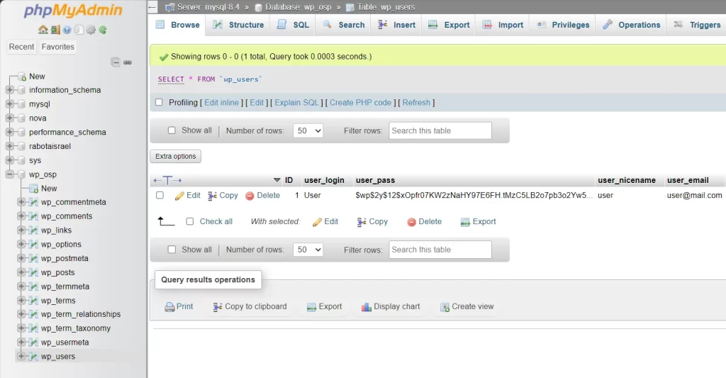 wp_userstable. - Find the row of the desired user and update the